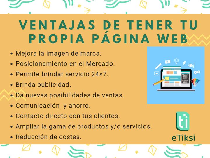 Ventajas de tener tu propia página web eTiksi mar. 08, 2021 Como ves, tener presencia en internet tiene muchas ventajas, y para hacerlo realidad cuentas con nosotros. Te ayudamos a obtener tu sitio web y correo institucional con dominio propio.
